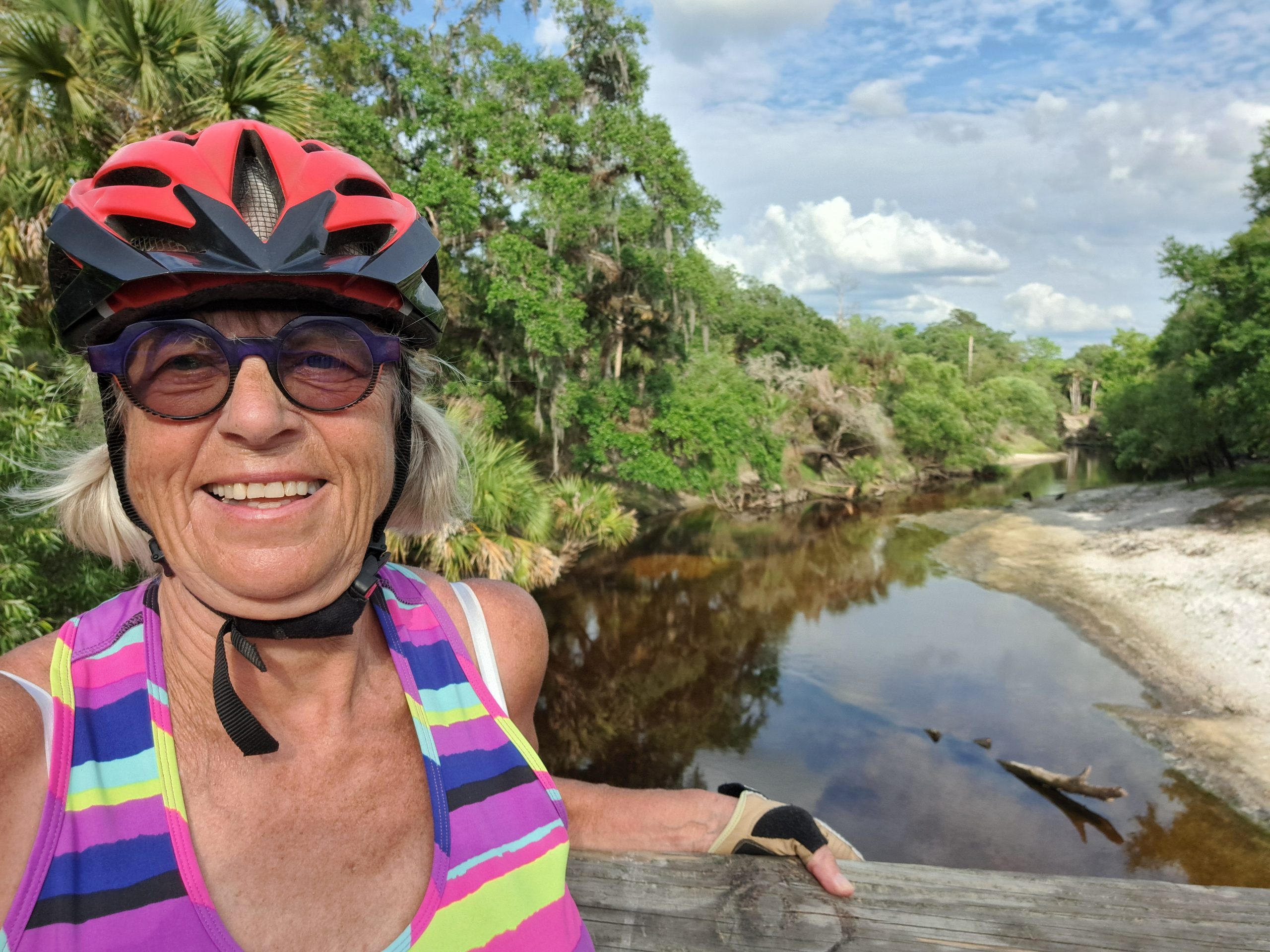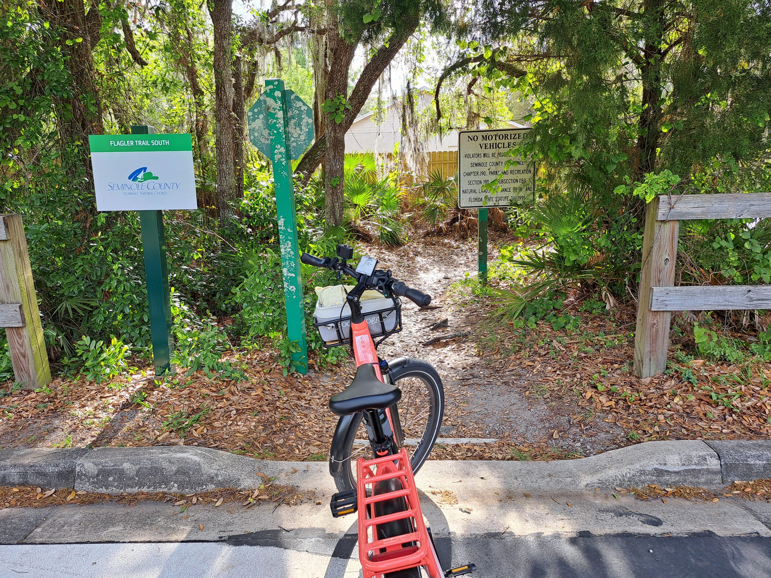 Es gibt diese besonderen Tage, und das war einer. Hier in Florida weiß man, die Edith kennt alle Trails. Nur, wenn ich schon alle gefahren bin, dann ist das langweilig, ich möchte neues sehen, neues erfahren. Also habe ich mir einen Roadtrip ausgesucht, er wurde in Komoot aufgezeigt. 61 Kilometer, ja, das schaffe ich bequem. Vorher wusste ich nicht, gibt es Bikelanes oder ist alles auf Straßen, aber ich war bereit. Startpunkt war der Parkplatz eines Sportkomplexes, schnell gefunden, geparkt und ab geht’s.
