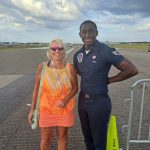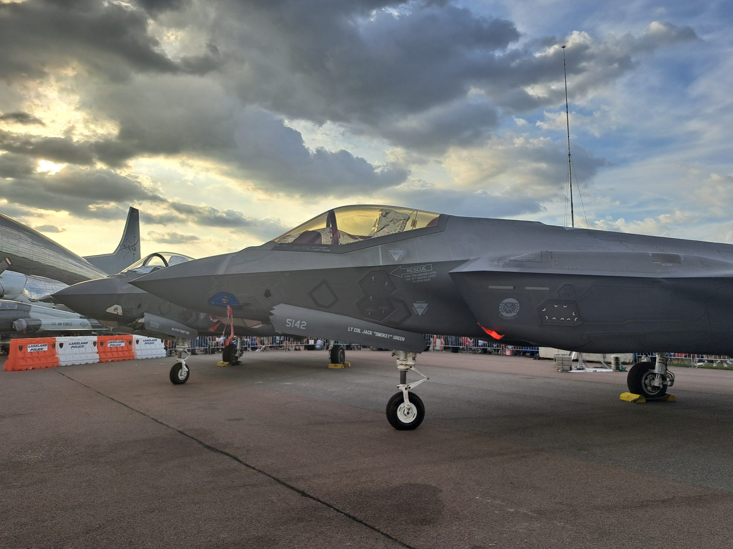Bislang war ja alles nett und ereignislos gelaufen. Dann aber kam ich in Höhe der Patrick Space Force Base an einer langen Reihe geparkter Autos vorbei. Was ist denn hier los. Ich erfuhr, dass es eine Airshow geben sollte. Also parkte ich mein Bike in der Reihe wie die anderen und unterhielt mich mit meinen Nachbarn. Beide Zahnärzte in Rente, kannten sich noch von der Uni. Der eine war auch Pilot, so konnte ich mit ihm Fliegergeschichten austauschen (ja, auch die nicht so schönen, Insider wissen Bescheid). Schon die Wartezeit war toll.