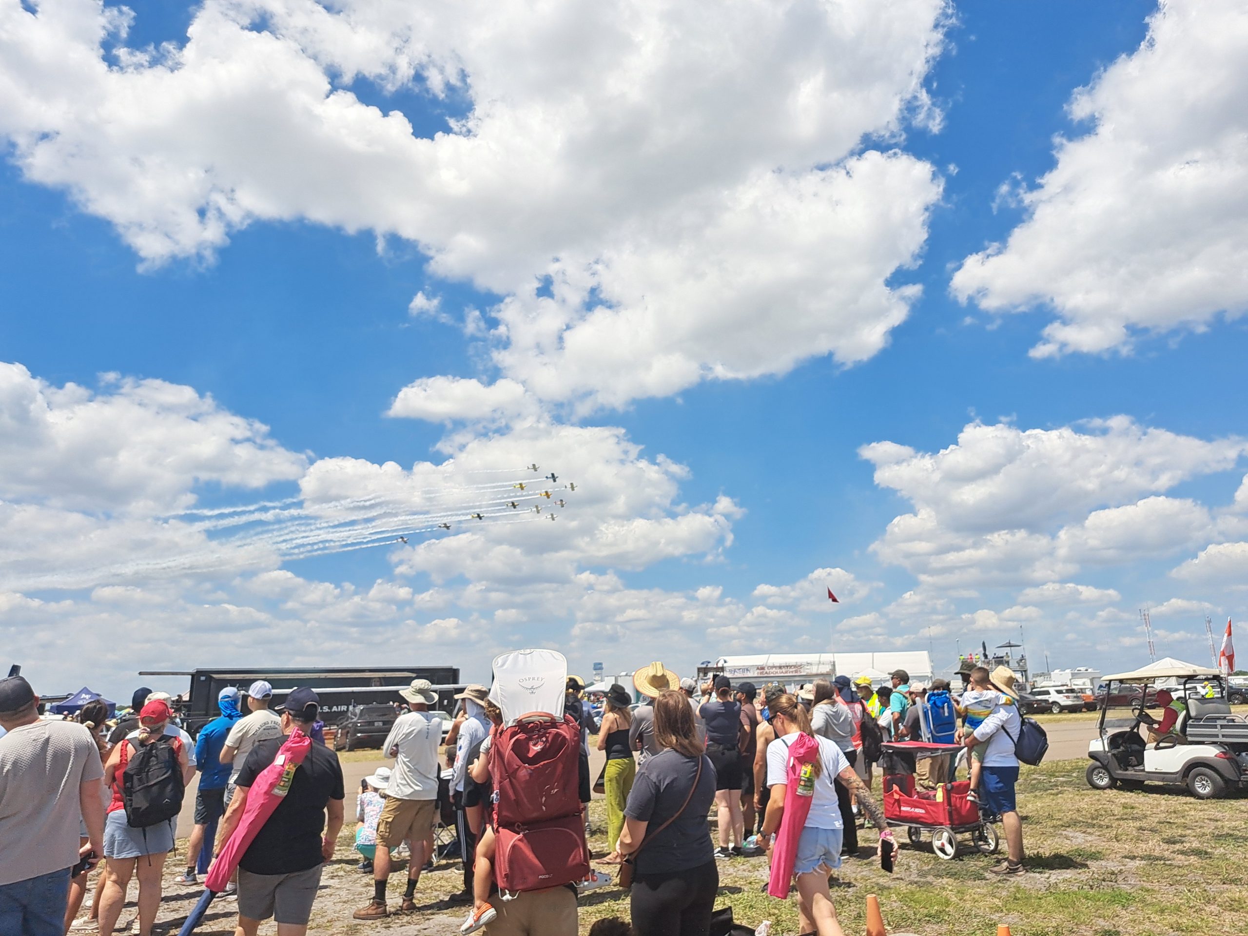 Der Flugplatz von Lakeland, auf dem das ganze stattfindet, ist riesig. Wikipedia sagt: Er ist jährlicher Veranstaltungsort der sechstägigen Flugshow Sun ’n Fun Aerospace Expo, der nach dem EAA AirVenture Oshkosh zweitgrößten Luftfahrtausstellung der Vereinigten Staaten. Während der Woche des Sun ’n Fun wird der Lakeland Linder International Airport mit über 60.000 Flugbewegungen zum verkehrsreichsten Flughafen der Welt.