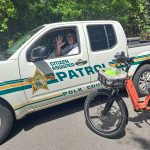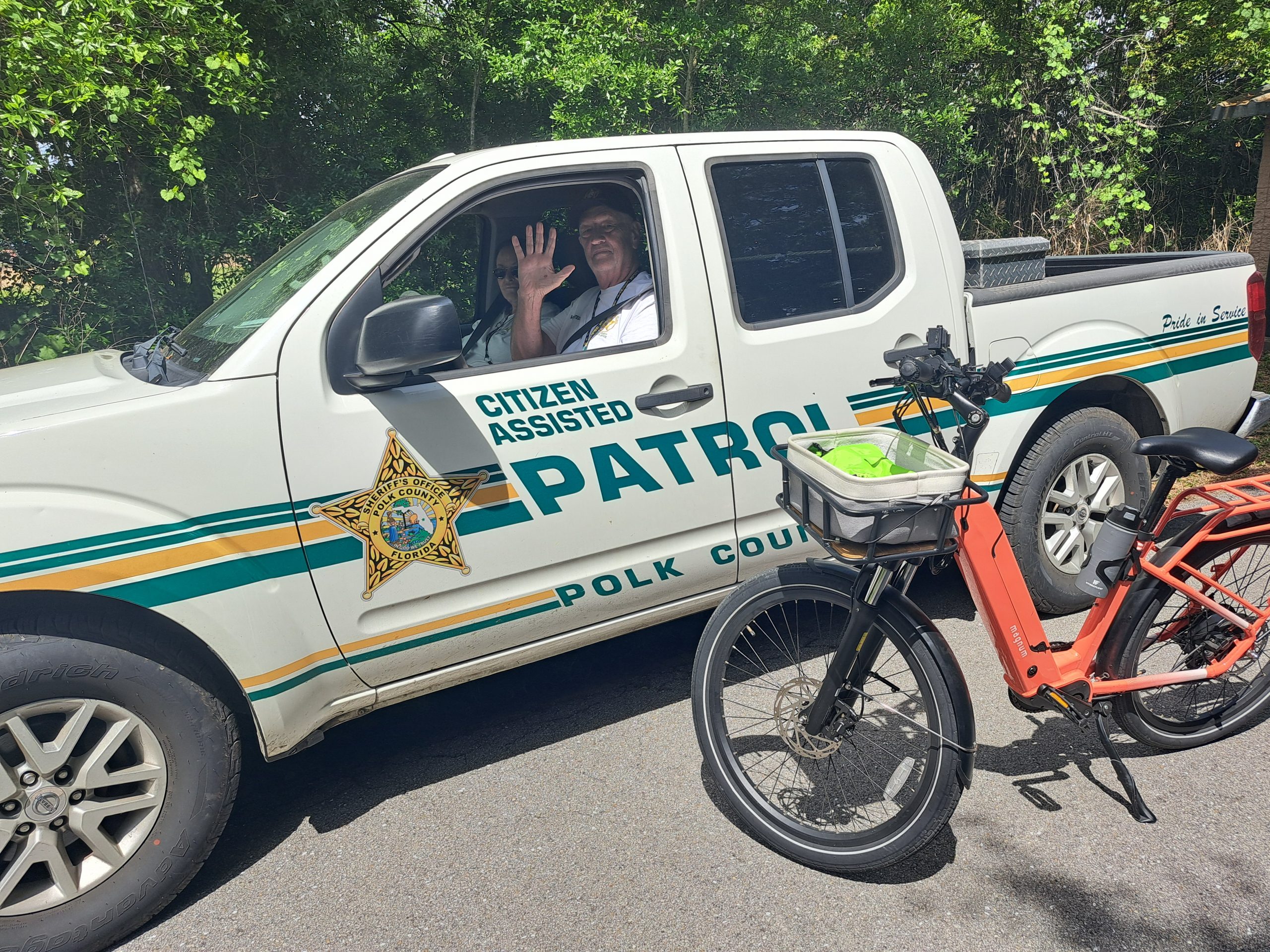 Was ich aber gesehen habe, war dieser nette Mann in einem Wagen des Sheriffs, der den Trail sehr langsam abgefahren ist und auf die Radfahrer aufpasste. Hintergrund ist, dass es in USA andere eBikes gibt als bei uns, class 1, 2 und 3. Sie sehen schon aus wie ein Motorrad, haben einen Throttle (wie heißt das bloß in Deutsch?) und können bis 28 mph fahren (class 3), selbst ohne zu treten. Es gibt natürlich wie überall gute und schlechte Menschen, aber die Raser machen uns anderen alles kaputt. Sie sausen den Weg entlang und nehmen wenig Rücksicht, das ist ein Ärgernis, das in Florida zu immer mehr Diskussionen führt. Gesetze sollen es regeln, aber noch ist nichts entschieden. Dieser zivile Hilfssheriff, der keine Polizeigewalt hat, fährt also mit seiner Frau die Strecke ab und schaut nach dem Rechten. Er kann, wenn es nötig ist, die Polizei hinzuziehen. Ich finde es gut, dass hier ein wenig aufgepasst wird. In USA ist die Kriminalität ja sehr hoch, deshalb haben normale Polizisten natürlich keine Zeit, Fahrradwege zu kontrollieren.