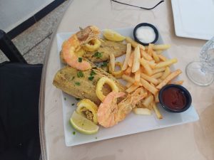 Mein Tipp für Individualisten jedoch, die sowohl das Meer als auch den Naturpark genießen wollen, ist das Hotel LaDune in Sidi Rbat. Sidi Rbat kenne ich tatsächlich schon seit meiner ersten Reise 1986, als es noch ein Hippie-Treffpunk mit sehr primitivem Campingplatz war. Einer dieser Hippies, Peter, hat aber bald schon ein Grundstück gekauft und nun hoch über dem Meer ein Hotel errichtet mit sehr schönen Zimmern, eingerichtet im afrikanischen Stil, Eindrücke seiner Fahrten durch ganz Afrika. Und dieses Hotel bietet Stellfläche für Camping. Der Hof des Hotels ist nicht ganz eben, deshalb hat man nun vor der Tür auf dem Hügel eine ganz ebene Fläche geschaffen, wo man den weiten Blick zum Meer hat. Wer also diesen wunderbaren Naturpark genießen will, ohne so viele Menschen um sich herum wie in Sidi Wassay, ist hier genau richtig, das ist eher noch ein Geheimtipp. Und essen tut man in dem Restaurant auch wunderbar, denn die eigenen Leute gehen täglich aufs Meer zum Fischen.