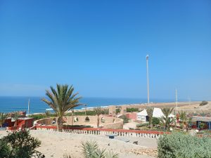 Wer aber direkt am Meer stehen will und dennoch einen ordentlichen Platz mit sauberen Sanitäranlagen sucht ist in Aglou Plage gut bedient. Die Stellplätze sind mit alten Büschen bepflanzt, die gerade rausgerissen und durch neue ersetzt wurden. Auch hier ist es in der Saison sehr voll, Reservierung nötig. Etliche Plätze haben Meerblick und direkt vor dem Camping ist ein kleiner Strand. Vorne an der Straße ist ein Laden mit den wichtigsten Lebensmitteln und ein Bus fährt nach Tiznit. Auch dieser Platz ist unbedingt zu empfehlen.
