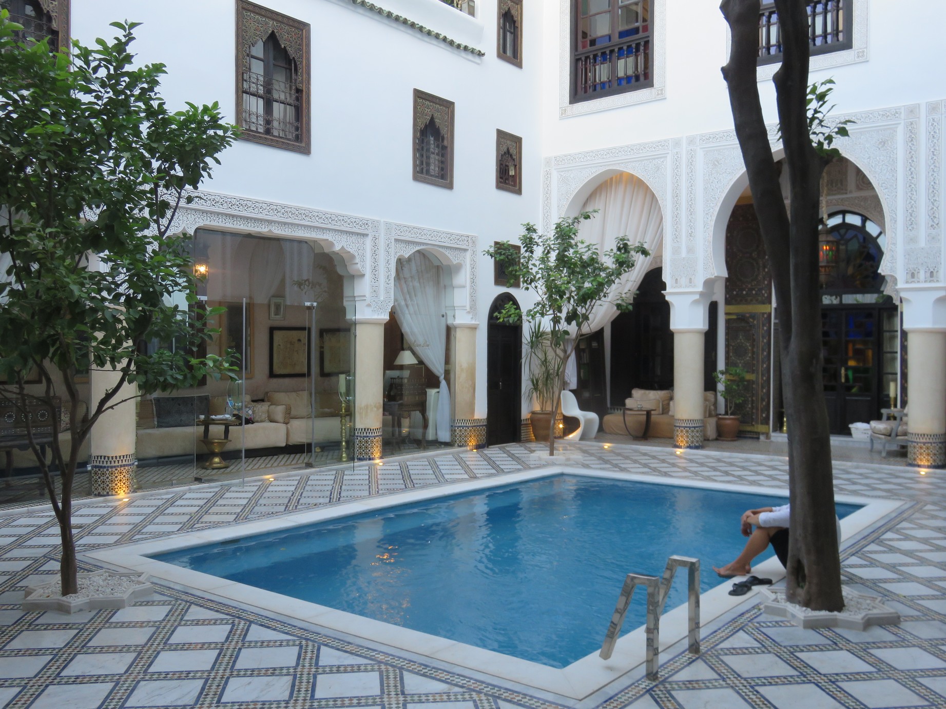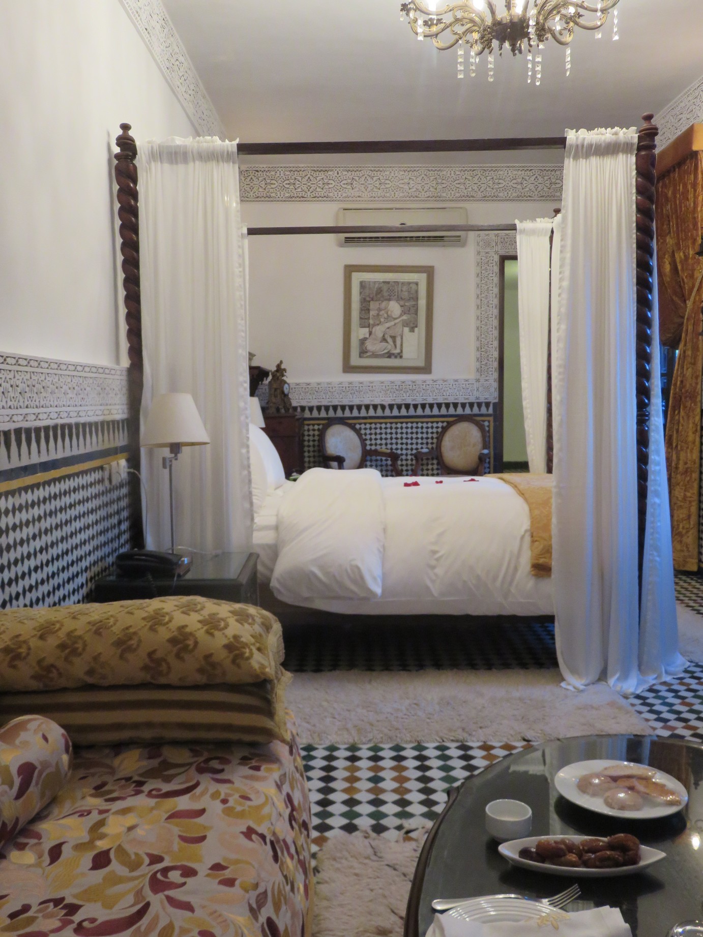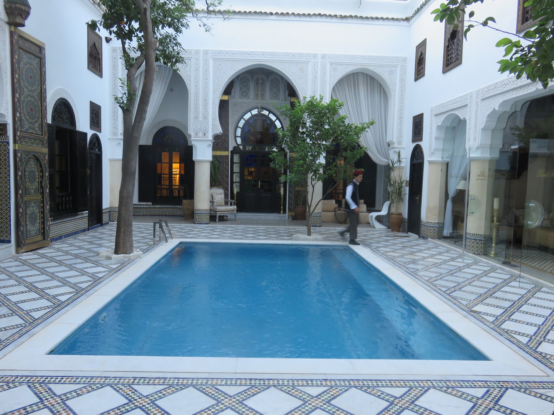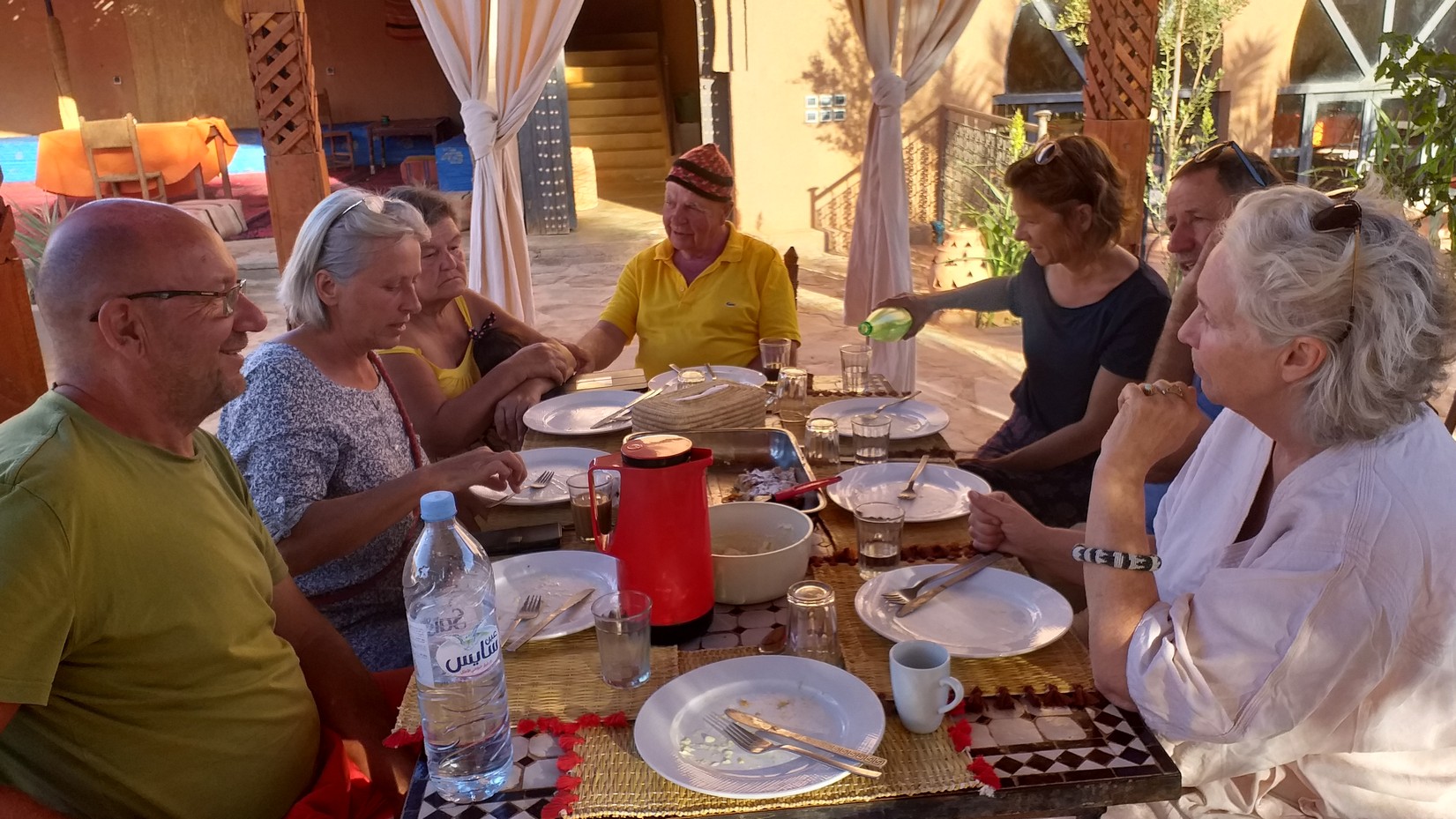 Doch in Fes wartet ja erst die richtige Herausforderung auf mich. Hier wird es spannend. Ich bin im Maison Bleue untergebracht, weil am nächsten Tag dort meine Gruppe von 27 Personen ankommen soll, angereist in 14 kleinen Flugzeugen. Das ist schon ein ziemliches Unterfangen, es musste zuvor eine Genehmigung eingeholt werden, wozu 110 Dokumente eingereicht werden mussten. Und die Genehmigung kam dann gerade am Abend zuvor. Nun ist der Morgen angebrochen, die Spannung steigt und schon vor Tagesgrauen erhielt ich die Meldung, dass ein Flugzeug technische Probleme hat und nicht kommen wird. Ich werde berichten …