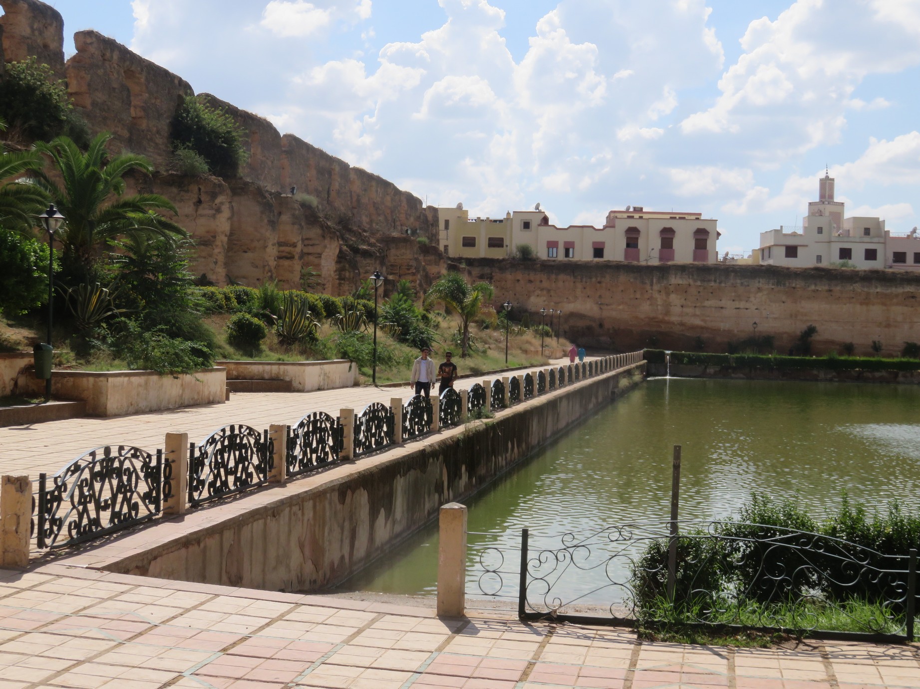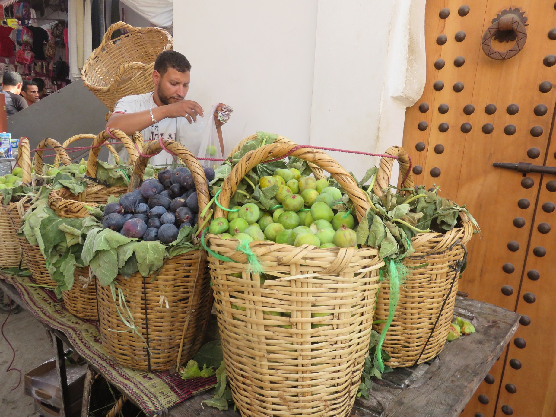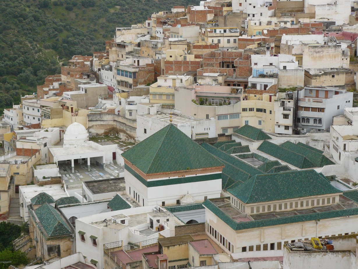 Es ist ja nicht üblich, dass ich meine Kunden selbst durch das Land führe, normalerweise organisiere ich nur die Reise und die ausgezeichneten Fahrer der Agentur sind zugleich die Führer. Allerdings nur auf der Fahrt, in Städten gehen Sie nicht mit den Kunden, da müsste auf Wunsch ein zusätzlicher Stadtführer besorgt werden. Deshalb war es für mich eine Premiere, einmal drei Tage mit Kunden auf der Reise zu sein und ich war gespannt, wie es läuft. Das Paar hatte zwei Wochen gebucht mit Königstädten und Wüste, so fuhr ich also die ersten drei Tage mit von Marrakech nach Rabat und weiter über Meknes nach Fes. Die Beiden haben es mir leicht gemacht, es waren super nette Leute. In Casablanca ließ ich sie noch allein durch die Moschee laufen, in Rabat erklärte ich ein wenig, wo alles ist, denn ich wollte mich nicht zu sehr aufdrängen. Doch als ich merkte, dass sie die Medina doch nicht richtig gefunden haben bot ich in Meknes an, sie auf einen Stadtbummel mitzunehmen. Das war richtig schön. Und in Moulay Idriss schließlich war es unbedingt nötig. Wie schon gesagt, die Fahrer bleiben beim Wagen, gehen nicht mit, und Moulay Idriss hat sich in den letzten Jahren insofern verändert, als es nun eine Menge falscher Führer gab, die sich gleich zu Beginn aufdrängen. Ich ließ Khalid bis ganz nach oben fahren, wo sich von der Panorama-Terrasse ein toller Ausblick bietet, danach wollten wir den Berg hinunter alleine laufen. Ich war erst einmal dort, und das ist schon Jahre her, ich muss zu meiner Schande gestehen, dass ich die Terrasse nicht auf Anhieb wiederfand. Doch ein Schuljunge zeigte uns den Weg und bekam ein paar Dirham. Hier geht der Blick vom Stadtteil Khiber hinüber auf die andere Seite und dazwischen liegt der grün gekachelte Grabbezirk. Das Herunterlaufen ist dann nicht so schwierig und wir kamen genau beim Mausoleum raus, wo Andreas sich gleich mit Nougat eindeckte. Dieser wird ja meist in der Nähe von religiösen Gebäuden verkauft. Durch den überdachten Souk ging es hinab zum Taxi-Standplatz, wo Khalid uns wieder einsammelte. Und Barbara deckte sich dort mit frischen Feigen ein, es ist gerade Saison und an jeder Ecke bekommt man diese leckeren süßen Früchte, die aber für marokkanische Verhältnisse nicht ganz billig sind. Das wiederum sind aber die Kaktusfeigen, die auch gerade reichhaltig angeboten werden. Vorher hatten wir noch Volubilis besichtigt, wo das Zurechtfinden nicht schwierig ist, und dann ging es nach Fes zu unseren jeweiligen Riads. Richtig schade, ich wäre gerne noch mit ihnen weiter gefahren.