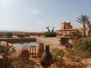 Da ist es bei Salah im Ain Nakhla doch ein wenig sauberer, wenn auch hier heute leider kein Camper zu finden ist. Ich fahre weiter zur Übernachtung ins Maison Nomades. Sehr hübsch. Ich habe schon einmal hier gewohnt, 2012. Viel hat sich nicht geändert, die Zimmer haben nun alle ein Bad, aber es ist weiterhin sehr angenehm in der schattigen Oase. Seit ich in Marokko bin ist es ja sehr heiß, auch dort waren es 35 Grad, aber nun geht es zum Atlantik. Schon am Morgen in der Oase waren es erfrischende 18 Grad und es hat eine Weile gedauert, bis das Thermometer schließlich auf 25 Grad gestiegen ist.