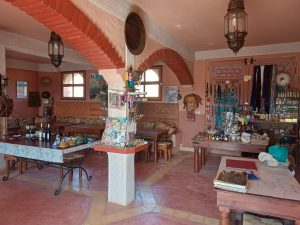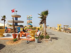 Ja, da hat sich einiges geändert. Ich fahre zunächst zum letzten in der Reihe, Equinox, und muss feststellen, dass der inzwischen überhaupt kein Camping mehr anbietet, nur noch Bungalows. Weiter zu Sable d’Or. Der ist im Prinzip wie früher, nur leider kein Mensch vor Ort. Also dann weiter zum Atlantique, der ist auch am nächsten zur Ortsmitte. Und der ist einfach schön. Ich habe es auch schon im letzten Campingführer erwähnt, aber so doch noch nicht gesehen, dieser Campingplatz ist es einfach wert, so weit zu fahren. Sehr liebevoll gestaltet, sehr sauber und sehr freundlicher Empfang. Ein junge Frau, Mariem, empfängt mich und zeigt mir alles, aber dann kommt auch der Besitzer Youssef, sein in meinem Buch erwähnter Vater Mohamed ist inzwischen verstorben. Auf dem Platz sind ja auch wunderbare Bungalows, und ich werde eingeladen, hier eine Nacht zu wohnen. Er sagt zwar, eine Nacht, eine Woche, wie du willst, aber so viel Zeit habe ich nicht, ich muss weiter.