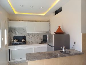 Diese Bungalows sind ein Traum, sie haben entweder ein oder zwei Schlafzimmer, Küche und Salon und sie sind sehr sauber. Nur ein Manko gibt es, der Platz ist nicht direkt am Meer. Direkt dahinter ist die Mauer eines Gebäudes, man muss ein wenig laufen, um ans Meer zu kommen. Aber der adrette Platz ist es wert und nun der beste in El Ouatia.